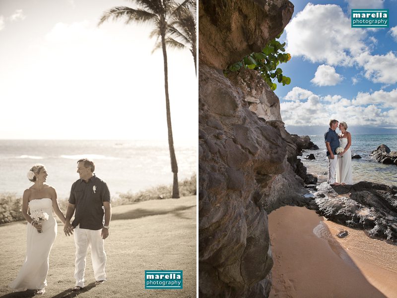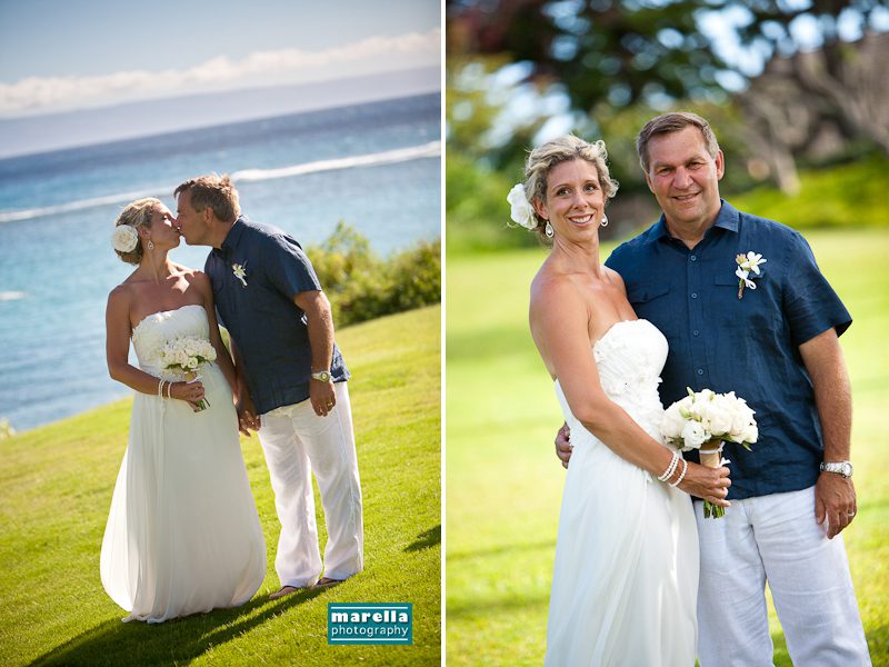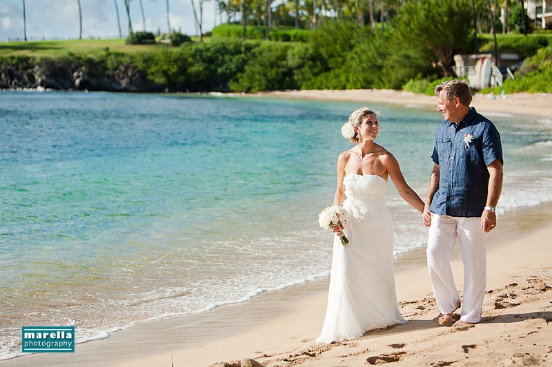 Kapalua Bay is a gorgeous location for a Maui destination wedding. A postcard of paradise nestled between the Ritz-Carlton Residences and the famous restaurant Merriman’s. Reverend Pia Aluli performed a beautiful ceremony. Here are some favorite wedding photos from Leslie and Myles’ intimate destination wedding at Kapalua Bay.