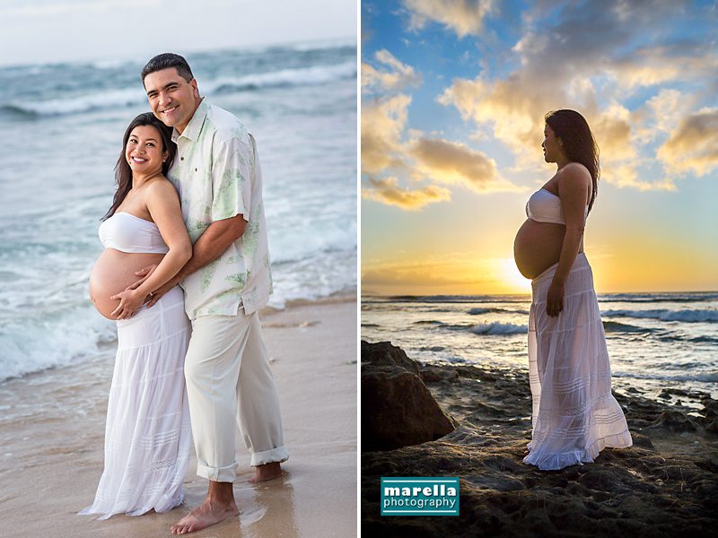 Oahu Maternity Photography Shoot highlights from Marella Photography. Amazing sunset beach photos on north shore of Oahu.